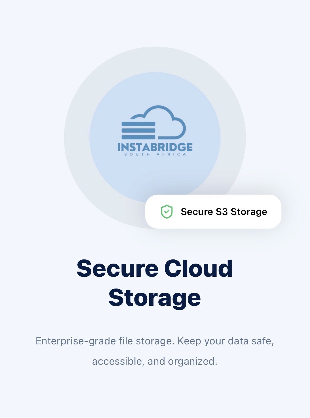 Instabridge gives you a private, secure cloud storage space accessible from your browser or mobile app. Store, organise and access your files from anywhere. No complicated setup. No shared servers. Just your storage, your way.